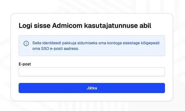 - Kui su eID ei ole veel ühegi Admicomi kontoga seotud, avaneb uus sisselogimisaken.