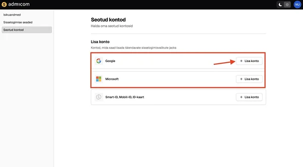 Selleks kliki vastava valiku juures nupule „Lisa konto“ ja vali konto, millega soovid siduda.