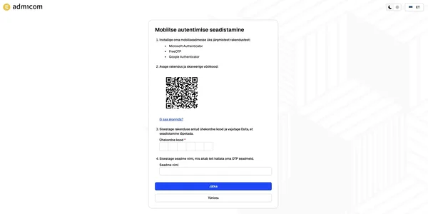 Kui oled sidumise vaatesse jõudnud, peab sa esialgu endale telefoni tõmbama kolmest äpist ühe. Seejärel ava oma telefonis autentimisrakendus ja skaneeri ekraanil olev QR-kood. Pärast skannimist näitab rakendus sulle ühekordset koodi, mille sisestad all olevatesse lahtritesse. Seejärel saad sisestada seadmele nime – midagi sellist, mis aitab sul hiljem aru saada, milline seade parajasti kasutusel on.